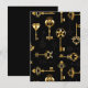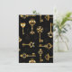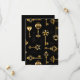 Sömlös mönster av antika, guld och silhuette nycklar mot svart bakgrund.