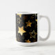 Sömlös med Golden Stars på svart bakgrund. Guld stjärna.