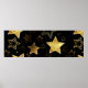 Sömlös med Golden Stars på svart bakgrund. Guld stjärna.