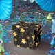 Sömlös med Golden Stars på svart bakgrund. Guld stjärna.