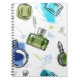 Sömlös mönster parfum flaska och vattenfärgstext anteckningsbok