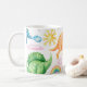 Sömlös mönster som skildrar dinosaurier i färgad, kaffemugg