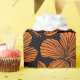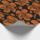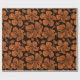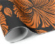 Sömlöst mönster med tropiska hibiscus-blommor på svart bakgrund i orange färg.
