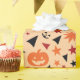 "Sömlös omslagning Papper: Pumpkin, Stars och Löv" visar pumpor och stjärnor, med färgstarka löv och roligt Halloween-text, skapande ett mysigt och festligt omslag.