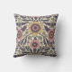 Dekorativ kudde har blommor och löv i skuggor av rosa och blått på en bakgrund av grädde och färgad.