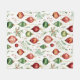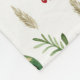 Julprydnadsföremål och blommor i ett festligt mönster med grönt, rött och vitt färg