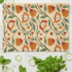 Sömlöst blommönster med orange och röda blommor med gröna blad på en beige bakgrund. Designen är livfull och dekorativ.