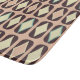 Sömlöst geometriskt mönster med mörkbruna bladformer, beige cirklar och teal diamantaccent. Retro och symmetrisk design skapar en vintagekänsla.