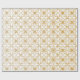 Sömlöst geometriskt mönster med invecklade åttatippade stjärnor i en gyllene nyans på en vit bakgrund. Designen förmedlar elegans och symmetri.