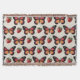 Ett charmerande och livfullt sömlöst mönster med en upprepad anordning av fjärilar i monarkstil och mogna jordgubbar. Fjärilarna är illustrerade med djärva svarta kanter, vita fläckiga vingspetsar och varma röda-till-orange gradienter. Däremellan tillför fylliga röda jordgubbar med gröna stjälkar en touch av sötma till kompositionen. Satt mot en ren, krämig off-vit bakgrund.