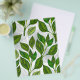 Sömlöst mönster av gröna mönstrade teblad och groddar på en ljus bakgrund. Te-design.