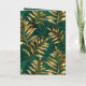 Sömlöst mönster av guld, smycken, blanka ormbunksgrenar och blad på grön, skogsmark, texturerad bakgrund. Gyllene ormbunke.