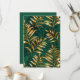 Sömlöst mönster av guld, smycken, blanka ormbunksgrenar och blad på grön, skogs-, texturerad bakgrund. Gyllene ormbunke.