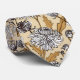 Sömlöst mönster med stiliserade svarta och vita krysantemumblommor och bruna blad mot en tan bakgrund.