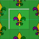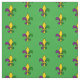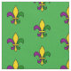 Fabric med ett sömlöst mönster med en fleur-de-lis; gult, lila och grönt fleur-de-lis i färg i New Orleans Mardi Gras firande; med gröntens bakgrund