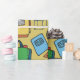 Sömlöst mönster med skolförråd på en gult presentpapper