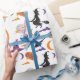 Sömlöst Witch och Broom Wrapping Papper med Måne Presentpapper