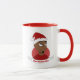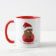 Jul mugg med en illustration av att lycklig leende afrikansk man med Jultomten; med redigerbar textmall; juldesign helgdagar