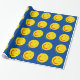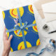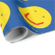 En grönt gult sol ler på blå botten. Lägg till din egen text. Du kan ändra både textens och bakgrundens färg.