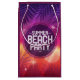 Dekorativ sommarstranddesign i party med handflatan träd och gnistor i bakgrunden.