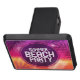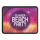 Dekorativ sommarstranddesign i party med handflatan träd och gnistor i bakgrunden.