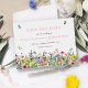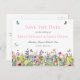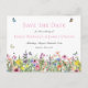 Bohemiskt, modernt och summariskt har detta vykort i spara datum meddelande en skarp färgad fält av vilda blommor med fjärilar, humla och ladybuggar. Du kan anpassa all text- och grafikplaceringsinformation efter dina specifika behov.