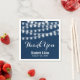 Tack för den moderna bröllopsmottagningen för Sommar-String-Ljuset. Tack för att du bläddrar med en elegant som vrider på den vita strängen ljus som hänger överst med en snyggt som blandar modern typografi på en mörk blått sommarbakgrund. Ett enkelt och trendig, diskettenhet, perfekt till sommaren! Klicka på knappen "CUSTOMIZE IT" för att anpassa typsnitt, flytta runt text, ändra bakgrunden till färg och skapa din egen unika, unika, natura bröllopsfest-blöjor-design.