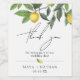 Personliga vinetiketter är perfekta för att lägga till en unik personlig touch till ditt vardagsvin, bröllopsfavoriter eller välkomstpresenter. Klassiskt elegant design för vår- eller sommarbröllop med akvarellcitroner med grönska ovanpå som säger tack i script, meddelande, era namn, bröllopsdatum i elegant bokstavsstil. Designad för att samordna med vår Lush Citron-serie.