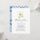 Fira bruden med denna eleganta medelhavsinspirerade bröllopsinbjudan. Med akvarellcitroner, mjuka blå blommor och handskrivna bokstäver är den perfekt för en sommar- eller trädgårdsbröllop. Anpassa texten enkelt för ditt speciella evenemang. Idealisk för en citroninspirerad, italiensk inspirerad eller rustik chic-firande.