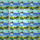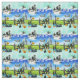 En upprepad utformning av A-himmel-grönt för sjöcellsgräs och vita fluffiga moln med lycklig halloween-inbjudan-atmosfär