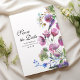 Den här enkla inbjudan till elegant, rosa och lila vildblomma sommaren Bröllop spara datum är ett perfekt för par som tittar för en romantisk och enkel beröring till sin stora dag. Den här handmålade vattenfärgsblomman ram omger dina uppgifter om bröllop. Ge dina gäster en underbar första glimt av bröllop till komen. Den här inbjudan blir ett fantastiskt tillägg till era bröllop-evenemang.