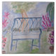 Vad som kan vara bättre en hett sommar eftermiddag än att vandra in i trädgården och slappna av på bänken. I den här charmerande vattenfärgen sitter den blå bänken på gräsmatta omgiven av söt blommor, lavender och träd. Känn sol på ansikte när du väljer den här mjuka pastellträdgårdsbänken.