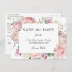 Skicka ut Spara datumkort ekonomiskt på vykort så att dina gäster kan planera för party eller evenemanget. Här visas för en 75:e födelsedagsfest firande, du kan anpassa texten hur du än väljer. Den här konstruktionen är så vackert feminin och färsk med rosa ros och blandade trädgårdsblommor. Rosa ros, blandade blommor och grönt omger er text i ett utmärkande stil. Hela texten kan vara personlig för party, inklusive hedersgästen.