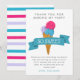 Söt glass tema födelsedagsfest tackkort med illustration av en färgglad glass på en våffelkägla i rosa, blå och lila färger. Texten säger "tack för att du gjorde min fest så söt". Perfekt för en flickas fest på sommaren.