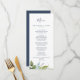 Den här sommaren är det gröna menykortet för middagen i bröllop en perfekt för en elegant mitt i sommaren bröllop. Den botaniska designen har en lush arrangemang av färgade löv av eukalyptus, grey och grönt med subtila sprit av blommar för rosa. Den här menyn kan användas för bröllopsmottagning, repetitionsmiddag eller vad som helst.