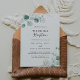 Denna sommar gröna eukalyptus löv bröllopsmottagning inbjudan är perfekt för en modern efterbröllopsfest. Designen har vackra handmålade akvarell gröna eukalyptusblad, som inspirerar till naturlig charm.