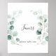 Denna sommar gröna eukalyptus löv dekorationer skylt är perfekt för ett modernt bröllop eller bröllopsfest. Designen har vackra handmålade akvarell gröna eukalyptusblad, som inspirerar till naturlig charm.
