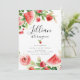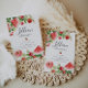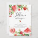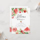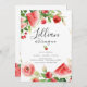 Rolig och ljus inbjudan med jordgubbar, körsbär, vattenmelon, blommor och grönska.