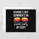 Lunch design med solglasögon och "School's Out Summer's in Lunch Dam Off Duty". Ge mig en lunch dam i skolans matsal, som har varit skolfri under sommarmånaderna helgdagar.