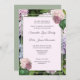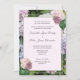 Ett kluster av sommar-Hydrangea-Blommar angav bakgrunden till inbjudan till elegant bröllop. Dekorerad i mjuka nyanser av rosa, grönt och lilac, med en grönt av sommaren gräns. I texten på framsidan finns information om din bröllopsinbjudan till fullt med Namn, datum, plats och mottagningsinformation för Bride och Groom. Den omvända sidan är en passande sommarens grönt. Om du vill anpassa dig ersätter du bara exempeltexten med vår enkla mall. Se till att du får tillgång till fullständiga Hydrangeas-Blommar, Rosa och Grönt Bröllop Collection för matchningskort och tillbehör.