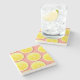 En mönster av färsk och saftig citronskivor i skarpa, levande skuggor av gult, med en vattenfärg struktur till ge, som nyklippt utseende. De placeras på laxens rosa för ett lysande och summariskt utseende, som rosa lemonad.