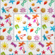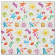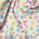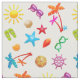 Sömnad och konsthantverktyg med sommar mönster design. Ljus tropiska färger utgör denna roliga samling av sniglar, sjöstjärnor, palmer, solglasögon, sandaler och mycket mer. Välj valfri bakgrundsfärg, i bomull, linne, tvill eller lämna den neutral.