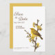 Inbjudan till gult om botaniska solskenor för kanariska fåglar och blommor från äppelblommor sommaren Bröllop spara datum är ett perfekt för par som tittar för en utomhuskontakt och enkel beröring till sin stora blommar. Den vackra vår-blomman ram omger dina uppgifter om bröllop. Ge dina gäster en underbar första glimt av bröllop till komen. Den här inbjudan blir ett fantastiskt tillägg till era bröllop-evenemang.