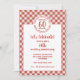 Rolig, avslappnad inbjudan med rött och vitt rutmönster och alla detaljer om din fest. Perfekt för familjeåterträff, sommarbröllop, picknick, grillfest, födelsedag, årsdag och mer.