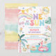 Fira din lilla en milstolpe med denna livfulla "En i solen"-första födelsedagsinbjudan. Med glada sommarillustrationer som regnbågar, palmer, flamingos, glassar och simbassängflottar sätter denna design den perfekta tonen för en rolig poolparty-firande. Klara färger och lekfulla detaljer gör den idealisk för en tropiskt-tematisk fest, vilket säkerställer att gästerna känner spänningen från det att de får den. Anpassa med ditt barns namn, festdetaljer och RSVP-information för att skapa en minnesvärd souvenir.