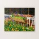 Briljantblommor omger en söt sommarfläck på detta ljusa pussel.
