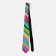 Vibrant rand i skuggor av rosa, rött, gult, grönt, lila, svart, orange, turkos och mer adorn denna färglösa nacke slips.