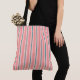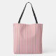 Strimmad mönster-tryckpåse med en sommar, känsel, i ljus och medelkorall rosa accentuerad med turkos.