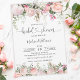 I anpassningsbar har inbjudningskort för möhippan oemotståndliga rosa ros och blandade trädgårdsblommor med efterföljande löv och grenar som sätter kant på inbjudan. Ett underbart skripttypsnitt med hjärtaccent används för händelsens rubrik "möhippa". Anpassa textmallen med information om möhippan.