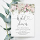Oemotståndlig rosa ros och blandade trädgårdar blommar med efterföljande löv och grenar ram överst gräns i denna utpräglade vattenfärgade blommigt inbjudningskort för möhippan. Det ser ut som feminin och trädgård. Anpassa textmallen med duschinformation.